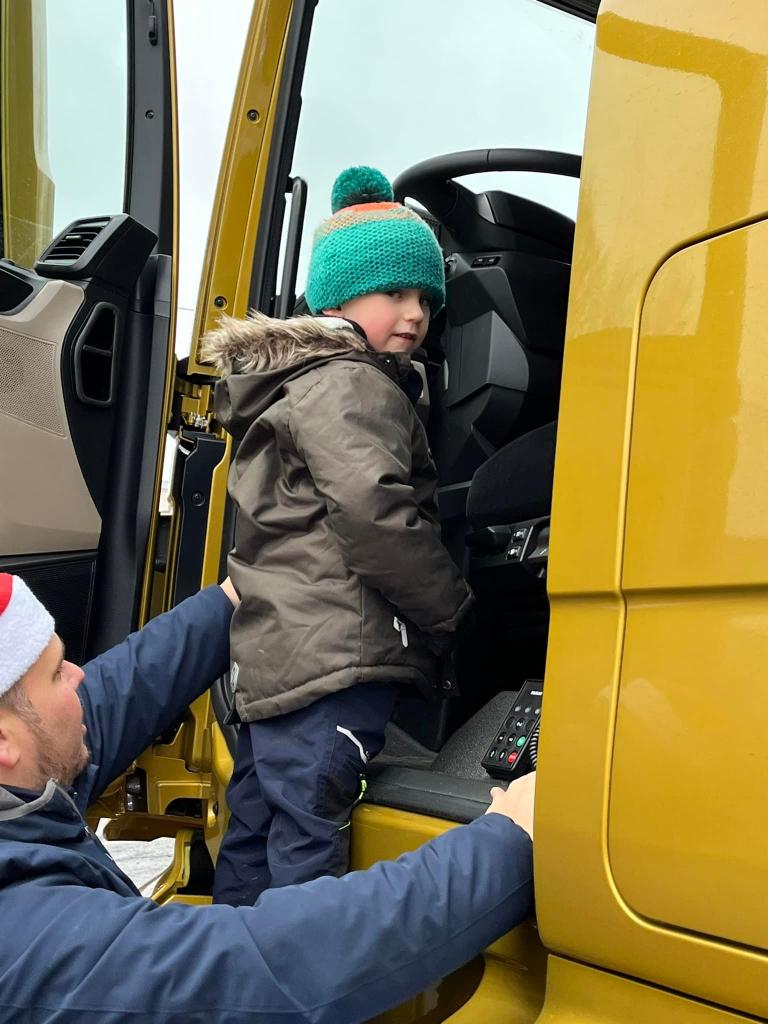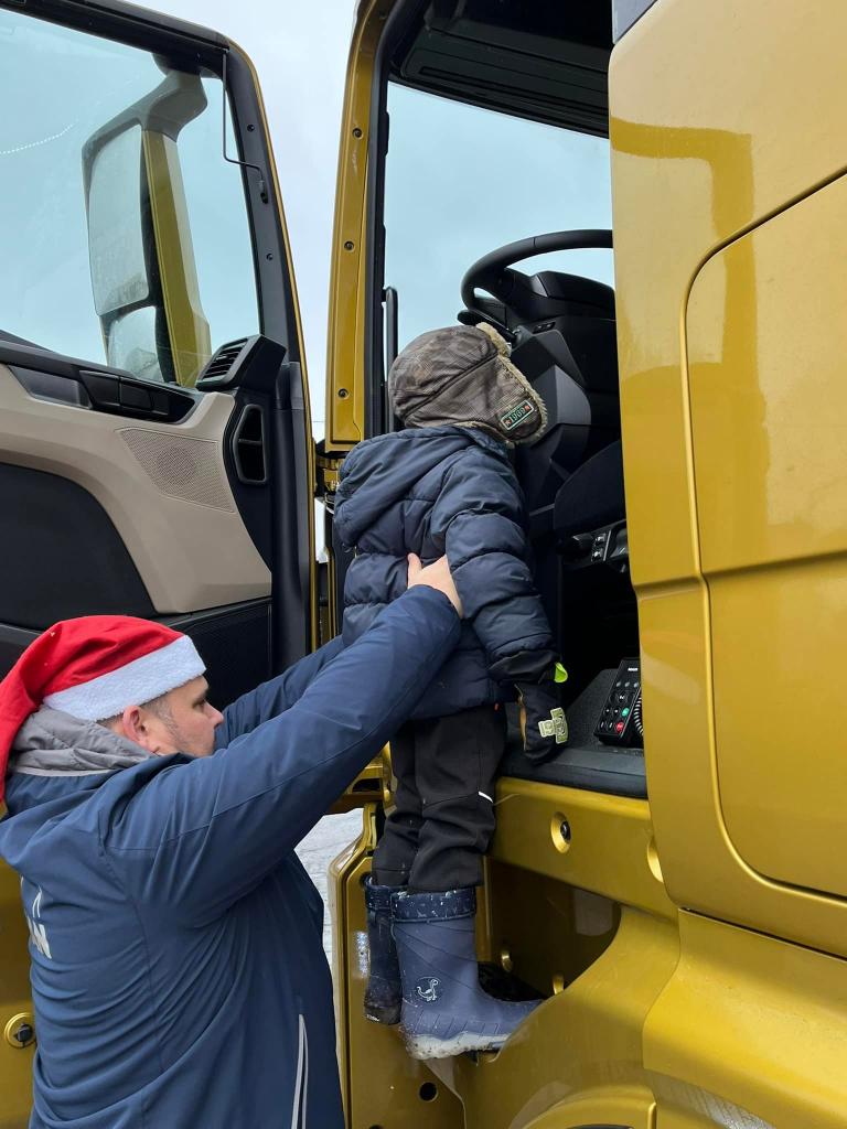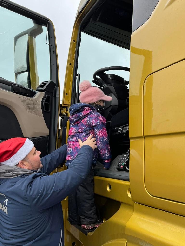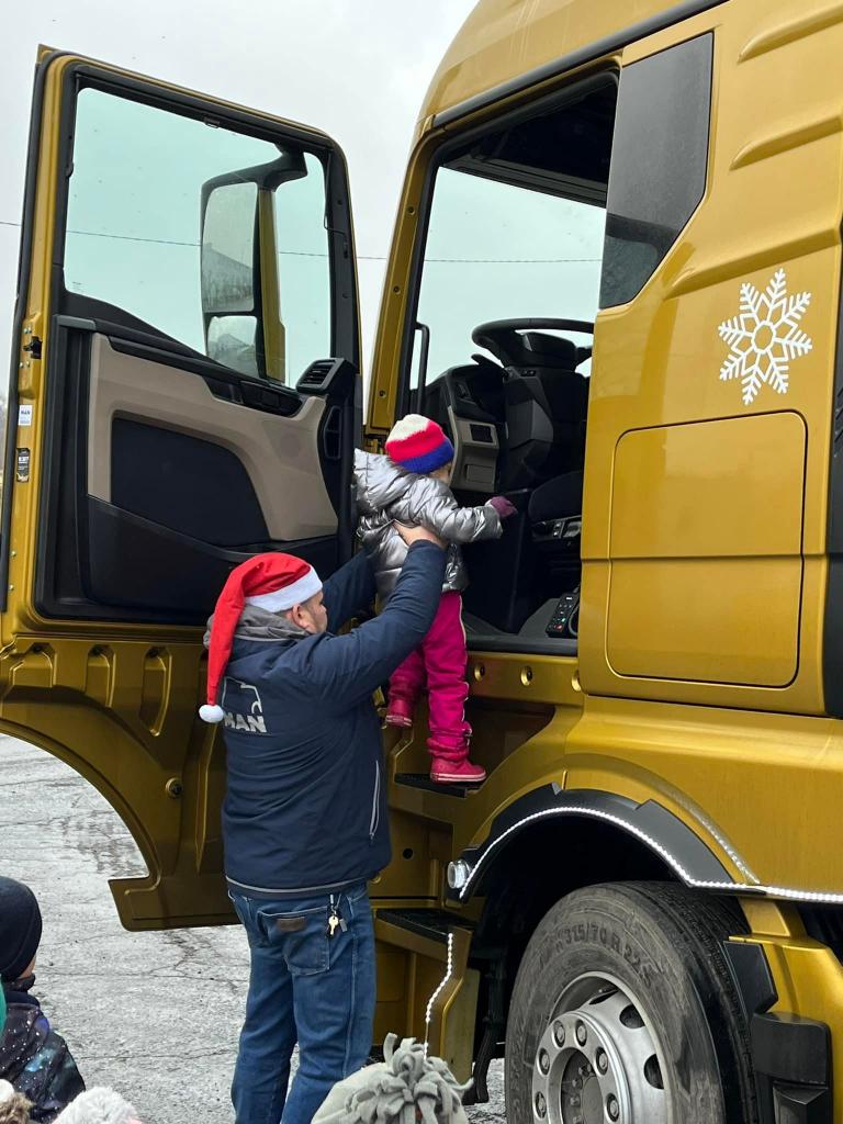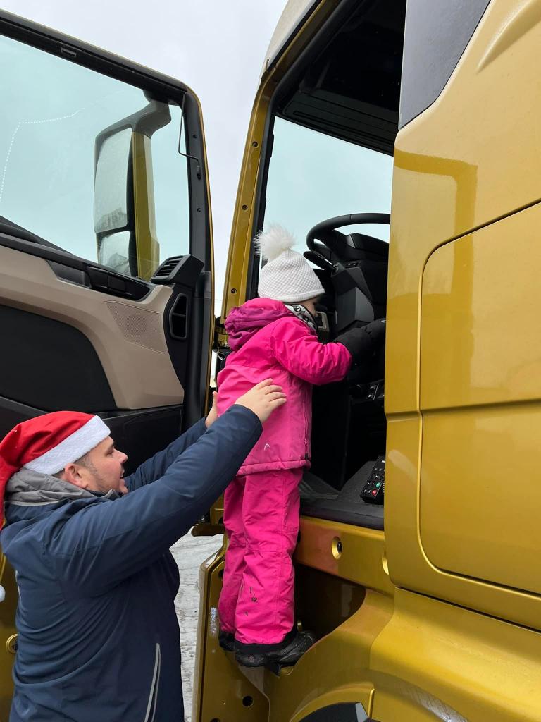 A díky tatínkovi - panu Vaňkovi, nás čekala ještě jedna nadílka! Přijel za námi s vánočním kamionem! Ke školce by se nevešel - ale nám to nevadí! Vyběhli jsme do Jílového k benzínce… všichni si kamion prohlédli a ještě dostali od laskavého Mikuláše dárečky! Moc děkujeme za zajímavý zážitek!!!!